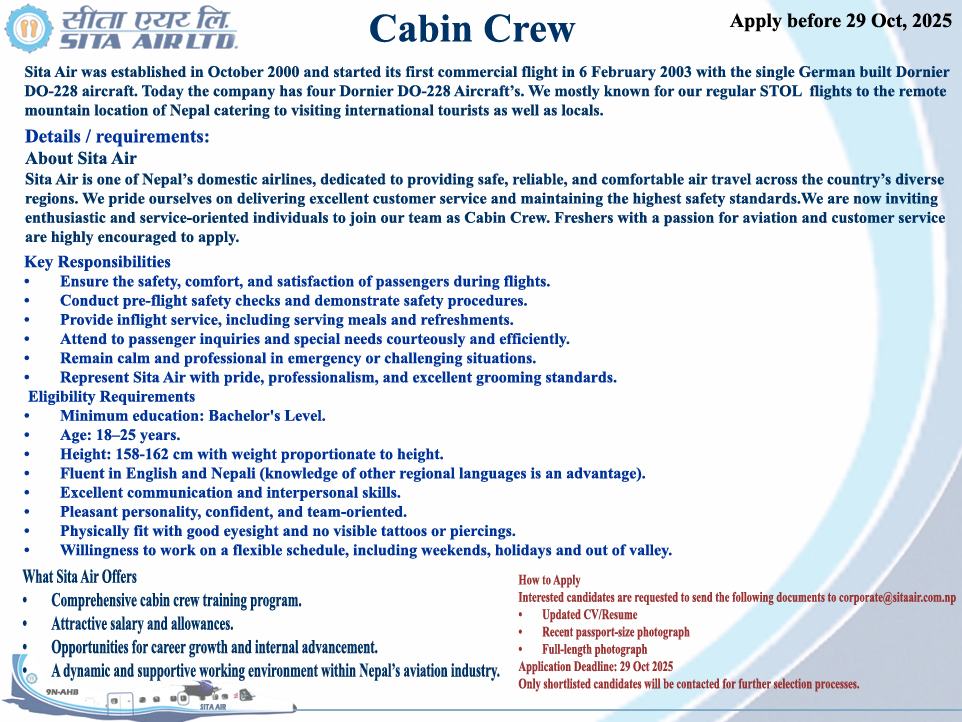 Sita Air Ltd. was established in October 2000 and started its first commercial flight on 6 February 2003 with the single German-built Dornier DO-228 aircraft. Today the company has four Dornier DO-228 Aircraft's.